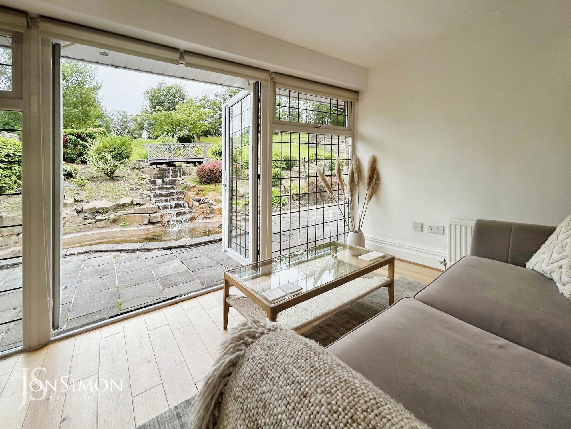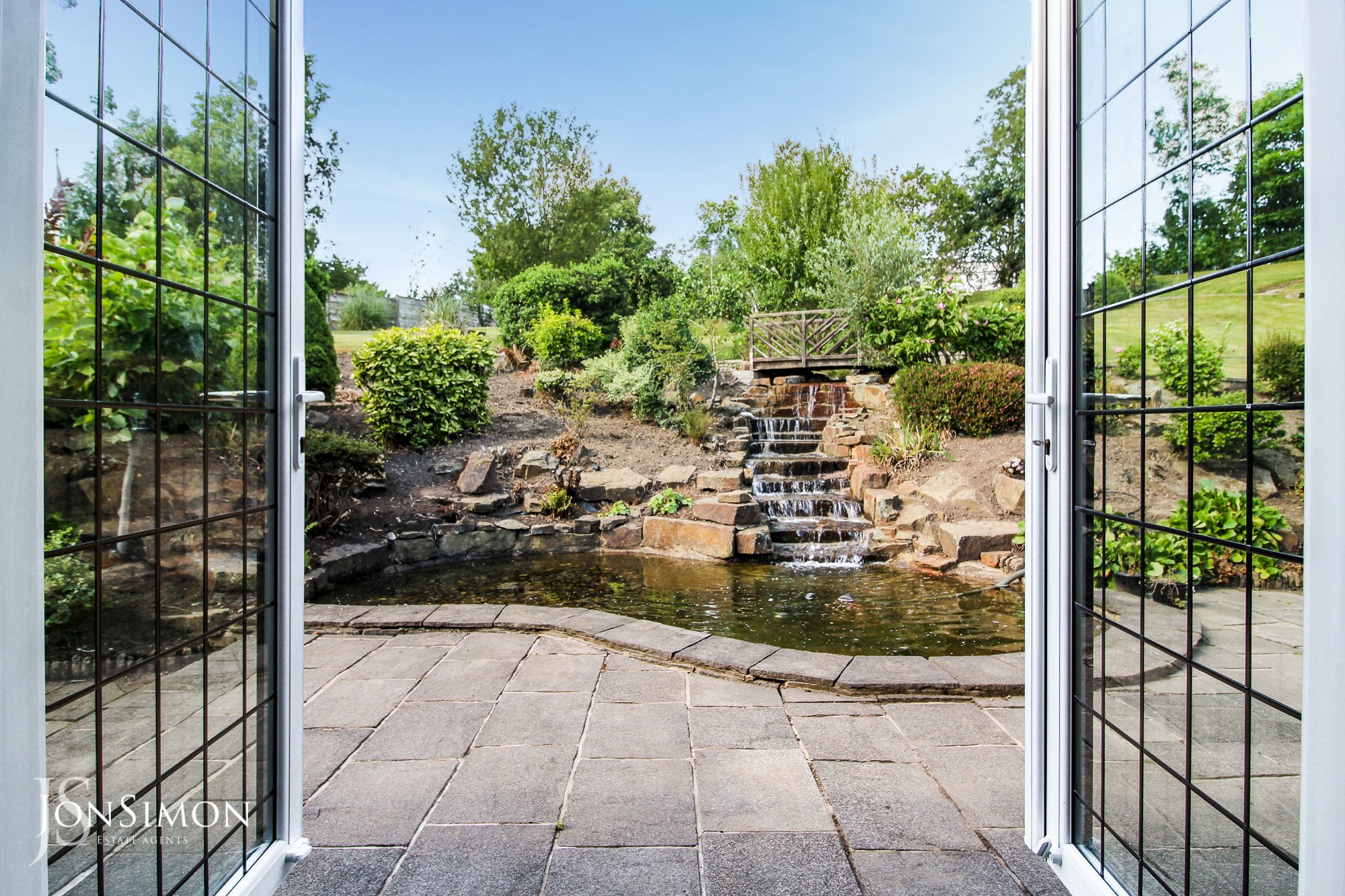 4.58m(15'0'') x 2.95m(9'8'') A versatile living area, taking full advantage of the aspect over 'waterfall' water feature, with French doors accessing large patio area, overlaid oak flooring.