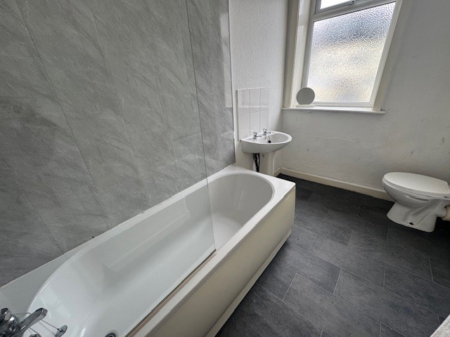 To the first floor, one double bedroom, one single bedroom and 3 piece bathroom suite with shower over bath.