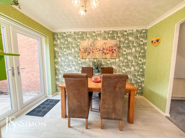 UPVC double glazed French patio doors, radiator, ceiling coving and ceiling point.
