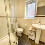 A modern three-piece suite comprising of a walk-in shower unit, low level WC, wash hand basin, chrome towel radiator, extractor unit, fully tiled walls and flooring, ceiling spotlights and UPVC double glazed side window.