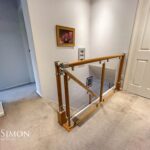Loft access with pulldown ladder, storage cupboard housing the combi boiler and ceiling spotlights.