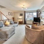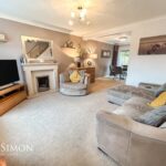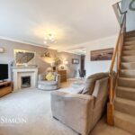 UPVC double glazed front window, radiator, coal effect gas fire with limestone surround, under stairs storage cupboard, ceiling coving, ceiling point and stairs leading to first floor ending.