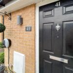 Composite double glazed front door, tiled flooring, ceiling covering and ceiling point.