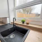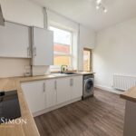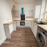 A brand-new modern fitted dining kitchen with a range of wall and base units with complementary worksurface, four ring electric hob with extraction above, electric oven, plumbed for washing machine, single bowl sink unit with drainer, combi boiler, breakfast bar, radiator, ceiling point, UPVC double glazed window and double glazed back door. Stairs leading to the first floor landing.