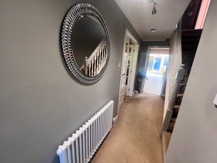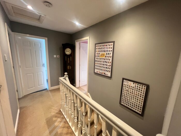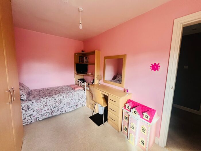 To the first floor, the property offers well-proportioned four double bedrooms with ample natural light and pleasant views. The master bedroom includes an en-suite bathroom, while additional bedrooms provide flexibility for family, guests, or a home office. Outside, the home is surrounded by mature trees and hedges, offering both privacy and a sense of nature. The large driveway accommodates multiple vehicles, and the side access leads to a generously sized rear garden (not pictured), perfect for summer entertaining or children’s play. Located in a sought-after residential area, this property benefits from close proximity to local schools, parks, shops, and transport links, making it an ideal home for families or professionals alike. Sold with no onward chain!!