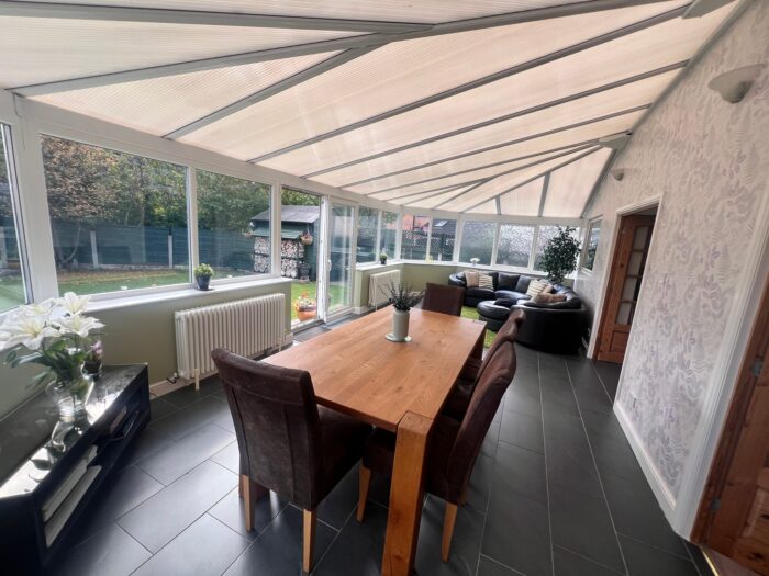 Nestled on a quiet, tree-lined street, this beautifully presented detached family home offers a perfect blend of modern comfort and classic charm. Set back from the road with a generous driveway and a private front garden, the property boasts excellent kerb appeal and a warm, welcoming feel from the moment you arrive. The ground floor features a spacious bay-fronted living room, ideal for relaxing with family or entertaining guests, a central entrance hall leading to a bright and airy kitchen/dining area with island, Snug room/office, large bright and airy conservatory and a utility room/home office which leads to the garage.