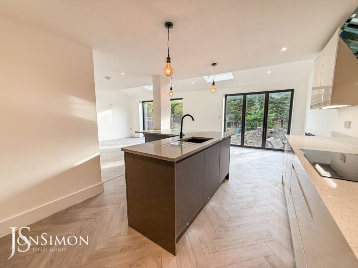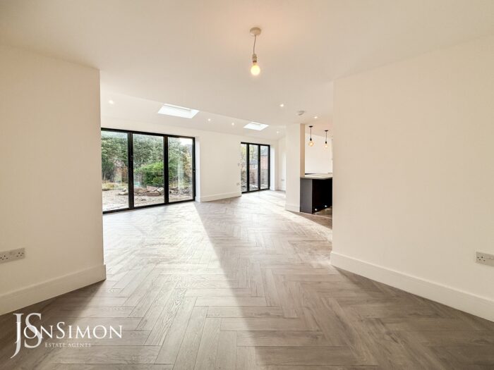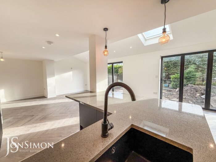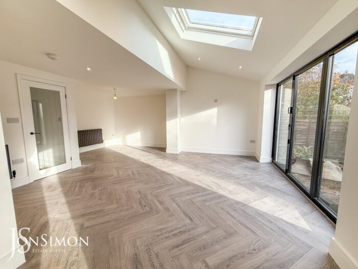 Sitting room and Dining room has two aluminium double glazed bi-folding patio doors, two Velux windows, radiators, wood effect flooring, ceiling spotlights and ceiling point.