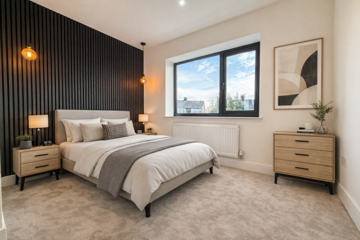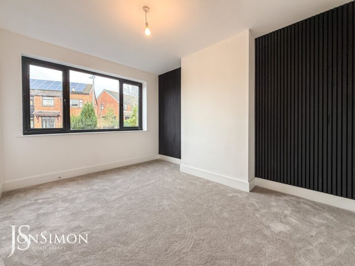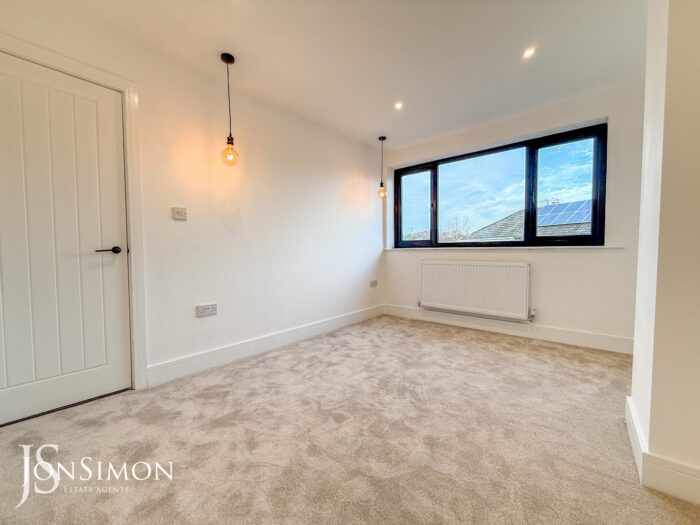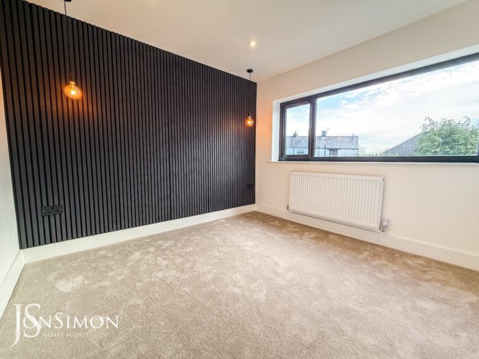 UPVC double glazed rear window, radiator, feature wall and lighting, ceiling spotlights.