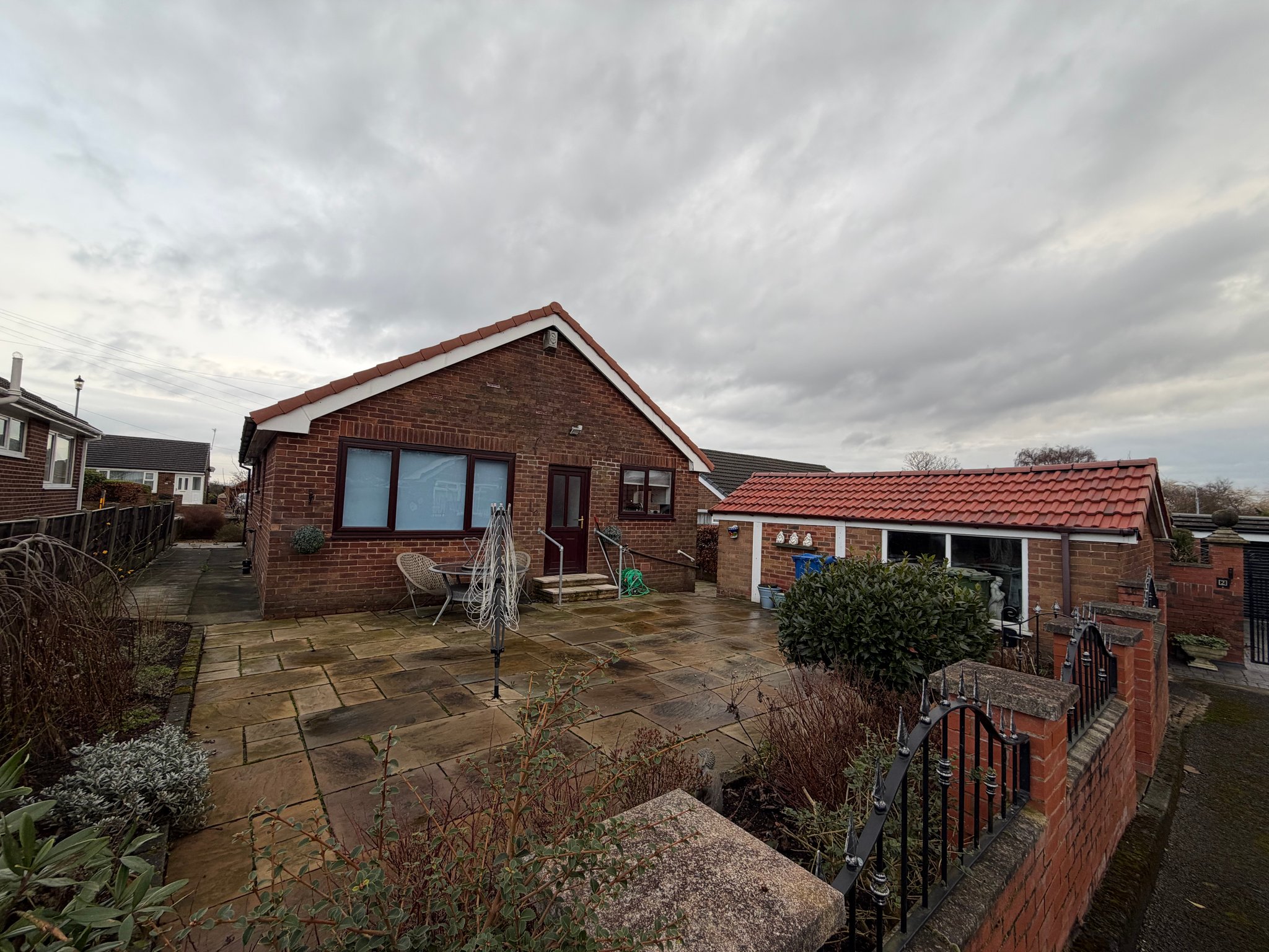 Situated on the ever-popular Grindsbrook Road in Radcliffe, this two-bedroom detached bungalow offers a fantastic opportunity for buyers seeking a well-located home with excellent potential. Set back from the road, the property benefits from a generous paved driveway providing ample off-road parking, along with a detached garage to the rear. The attractive frontage is complemented by low-maintenance garden areas, making it ideal for those looking for easy upkeep. Internally, the bungalow offers well-proportioned accommodation throughout, including a large open hallway, spacious lounge with front-facing window, a modern fitted kitchen with NEFF appliances, two very generous bedrooms with fitted furniture, and a modern bathroom with roll in shower. The property benefits from natural lighting throughout with large windows in every room. The layout is practical and well suited to a range of buyers, from downsizers to small families or those looking for single-level living in a great location. Sold with no onward chain!