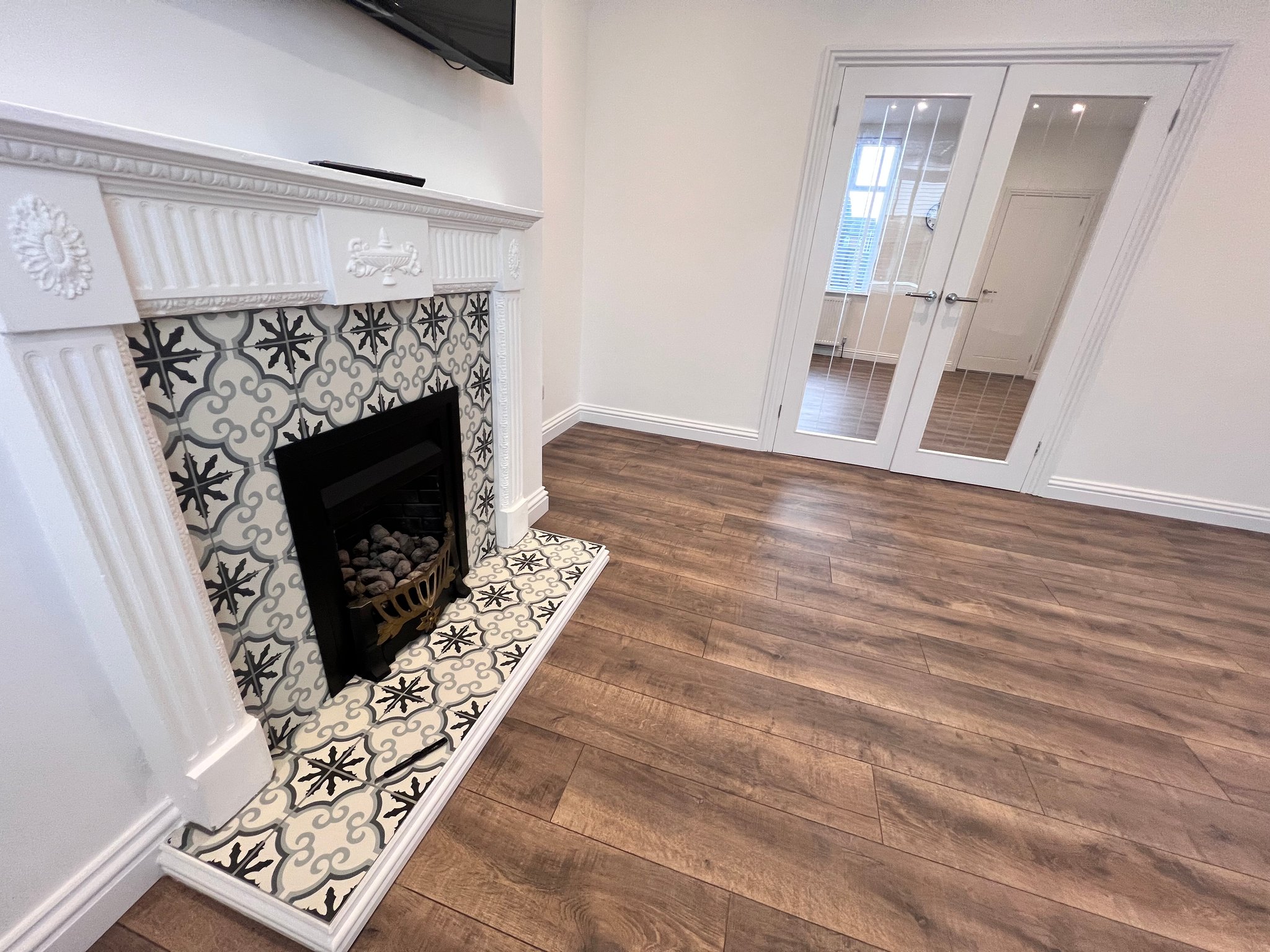 Briefly comprising; large hallway with original terraced home features, modern and light lounge with gas fire, glass internal doors leading into a second reception room/dining room. Brand new high gloss kitchen leading out to a paved patio area to the rear with access to the back of the property which benefits from space for parking. To the first floor, a large inviting landing space leads into two generous double bedrooms and a further small double to the front. The bathroom is fully renovated throughout with the benefit of a shower cubicle and bath and an LED mirror creating a warm ambiance throughout.