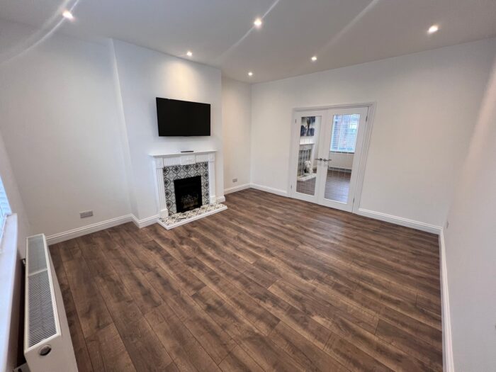 Briefly comprising; large hallway with original terraced home features, modern and light lounge with gas fire, glass internal doors leading into a second reception room/dining room. Brand new high gloss kitchen leading out to a paved patio area to the rear with access to the back of the property which benefits from space for parking. To the first floor, a large inviting landing space leads into two generous double bedrooms and a further small double to the front. The bathroom is fully renovated throughout with the benefit of a shower cubicle and bath and an LED mirror creating a warm ambiance throughout.