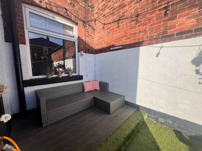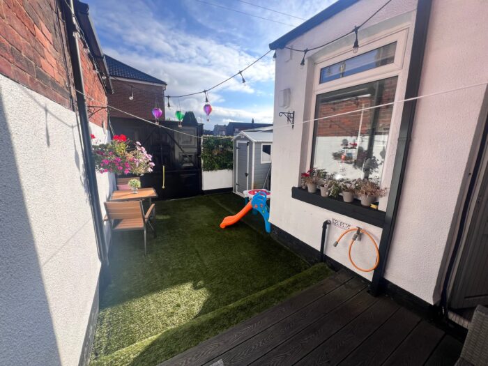 To the rear this property has a low maintenance garden space with composite decking and artificial grass, the garage door allows for extra parking if required.