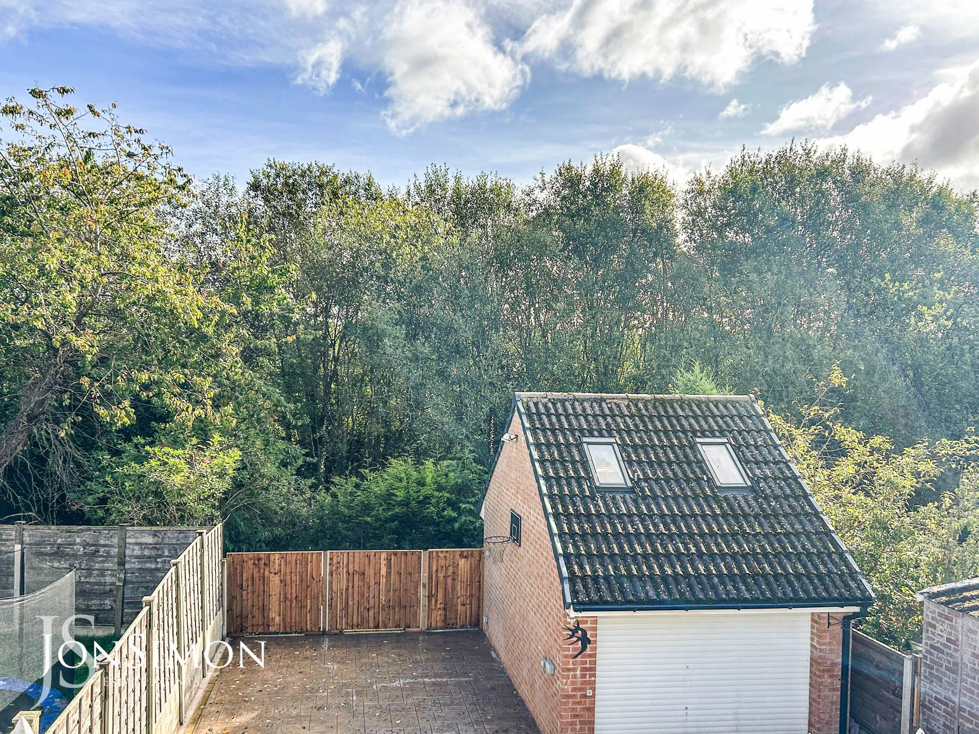 A detached brick built garage with electric roller garage door, power points and ceiling spotlights. Loft access with pulldown ladder leading to additional room. with Vellex windows, PowerPoint, electric wall radiators and ceiling point.