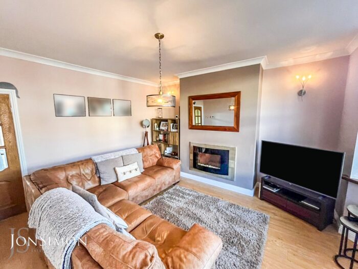 Double glazed bay window to the front, television point, wall mounted pebble effect electric fire, laminate floor, ceiling light point and two wall lights.