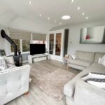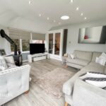 UPVC double glazed French patio doors, UPVC double glazed windows, laminate flooring, power points, bar and ceiling spotlights.