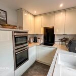 3.78 x 2.25 (12'4" x 7'4") - A wide range of modern wall and base units with complementary work surface, integrated appliances include, fridge freezer, induction hob, sink unit with drainer, washing machine and dishwasher.