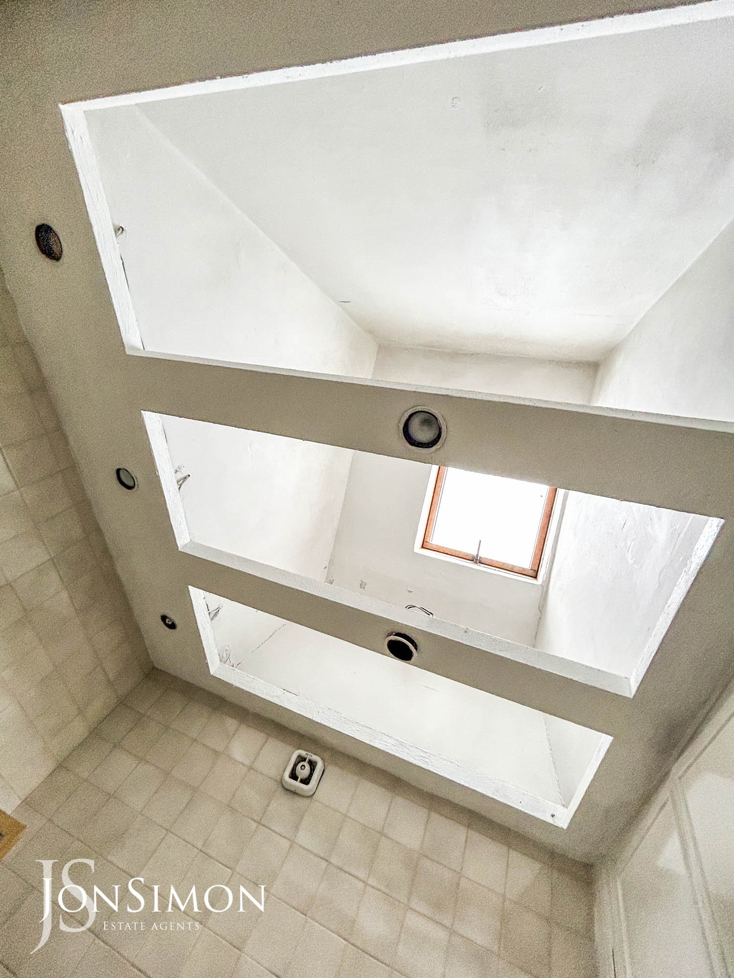 UPVC double glazed window, ceiling coving and meter cupboard.