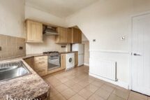 A range of wall and base units with complementary worksurface, four ring gas hob with extractor unit above, electric oven, plumbed for washing machine and dryer, radiator, part tiled walls, storage cupboard under the stairs, one and a half bowl sink unit with drainer, tiled flooring, combi boiler, ceiling covering, ceiling point, UPVC double glazed rear window and back door.