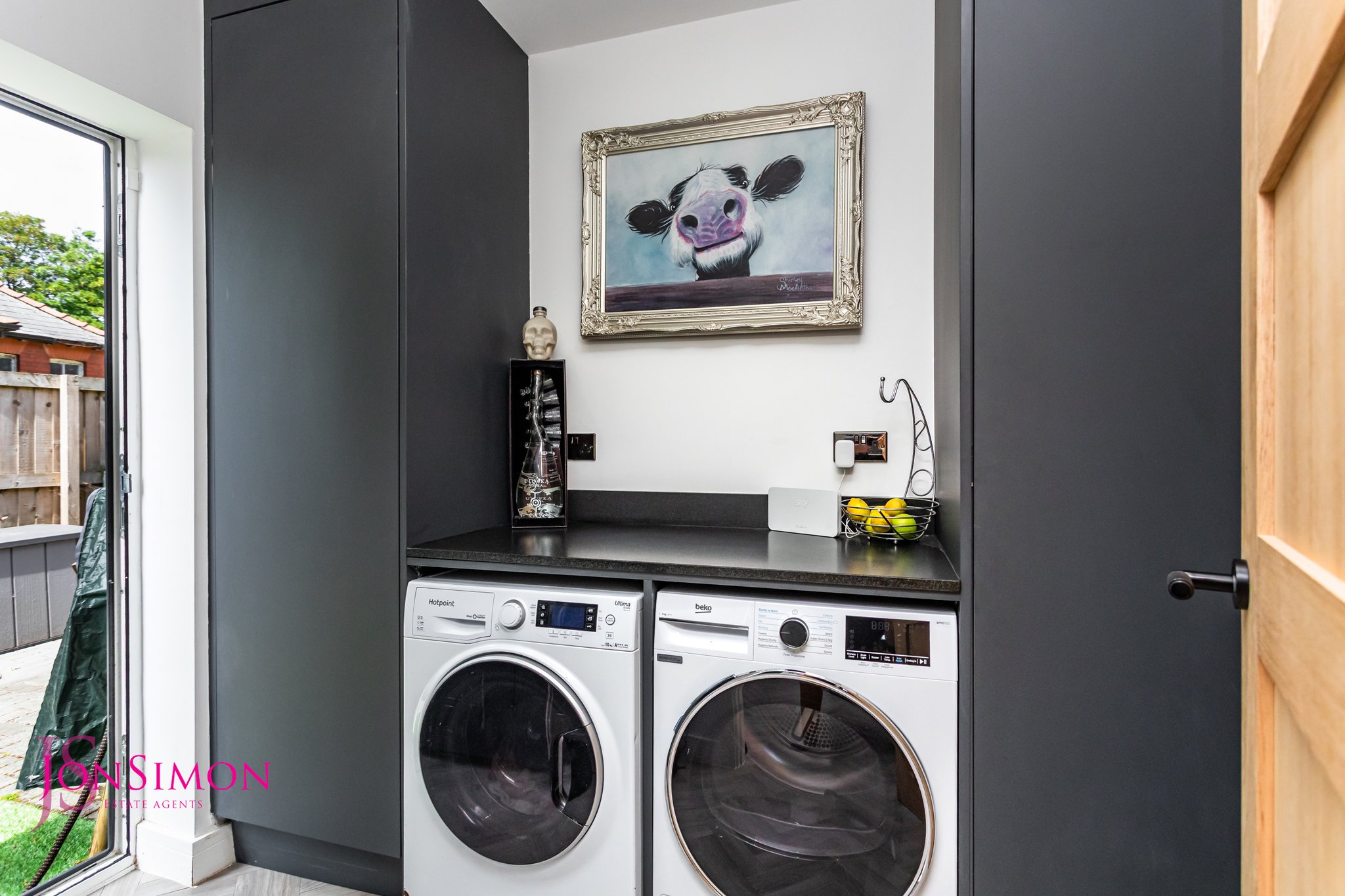 With matching contemporary units and plumbed for both washing machine and tumble dryer. With access to the side of the property.