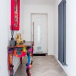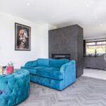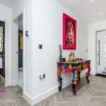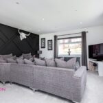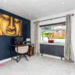 Just steps away, an additional reception room is thoughtfully designed as a sophisticated home office, providing a tranquil and private space for work or study. A striking black feature wall complements the overall aesthetic of the home, creating a seamless flow of style.