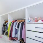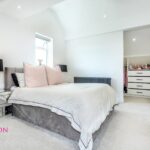 Overlooking the rear with its enchanting views, showcases a neutral design complemented by a walk-in dressing area equipped with fitted drawers and hanging storage.