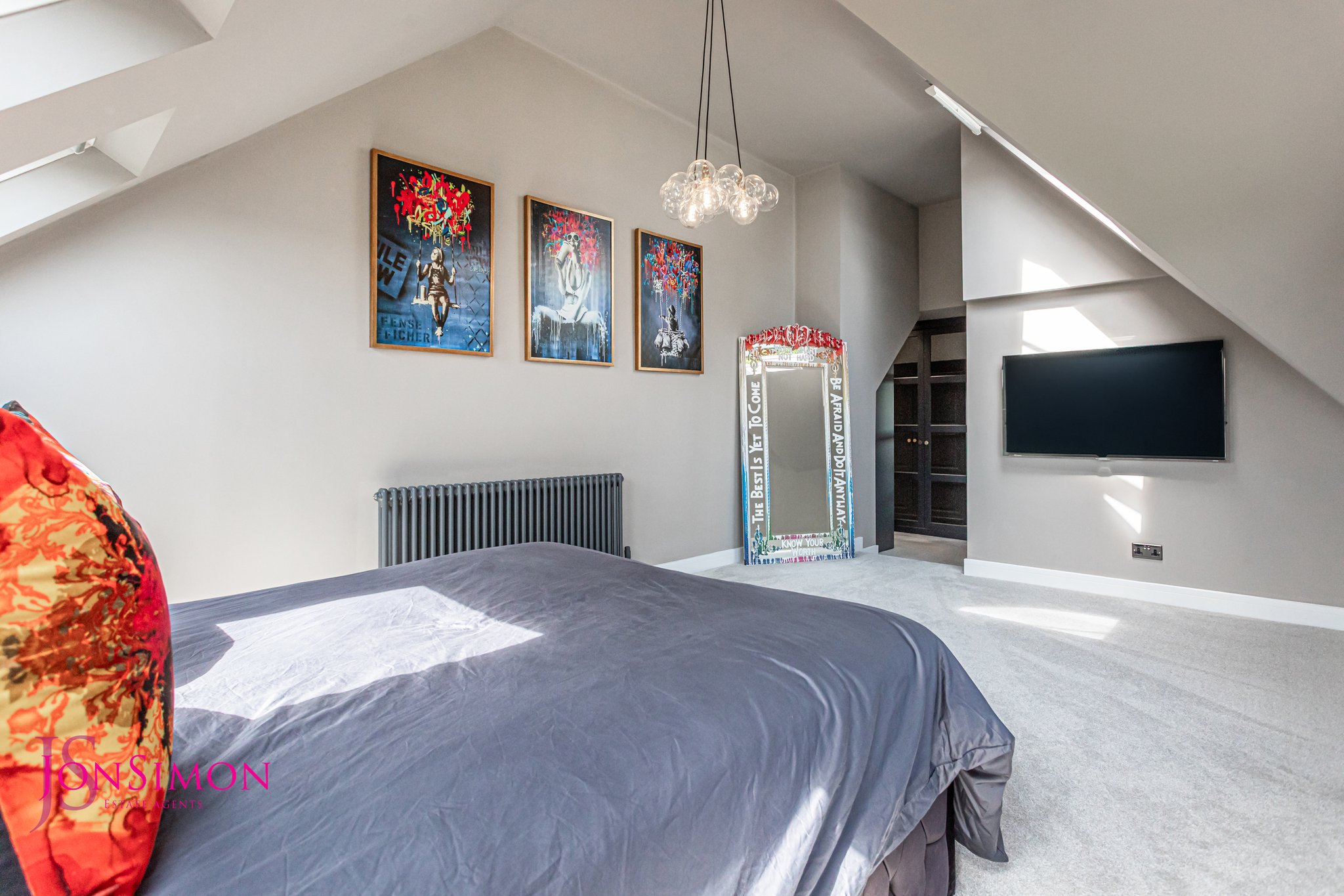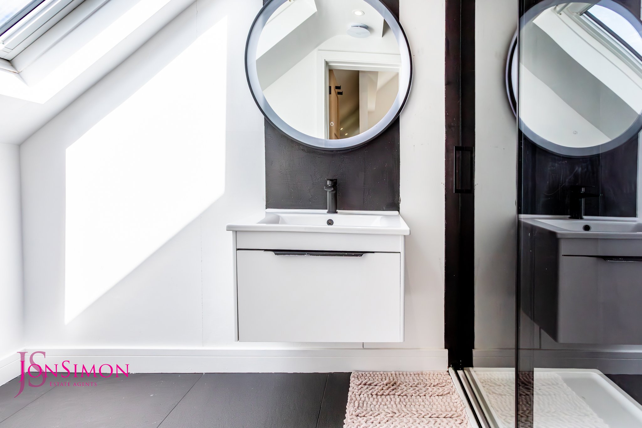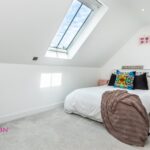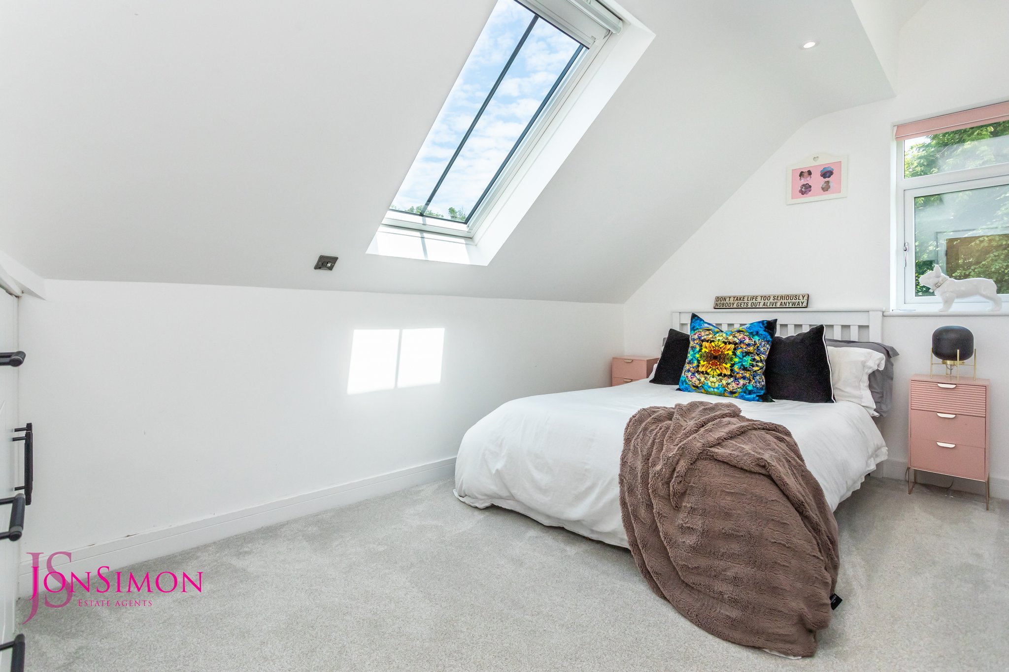 Bathed in natural light and neutrally decorated, looks out over the front of the home and includes an additional Velux window to the side. With built-in wardrobes, this room is a canvas for your personal touch.