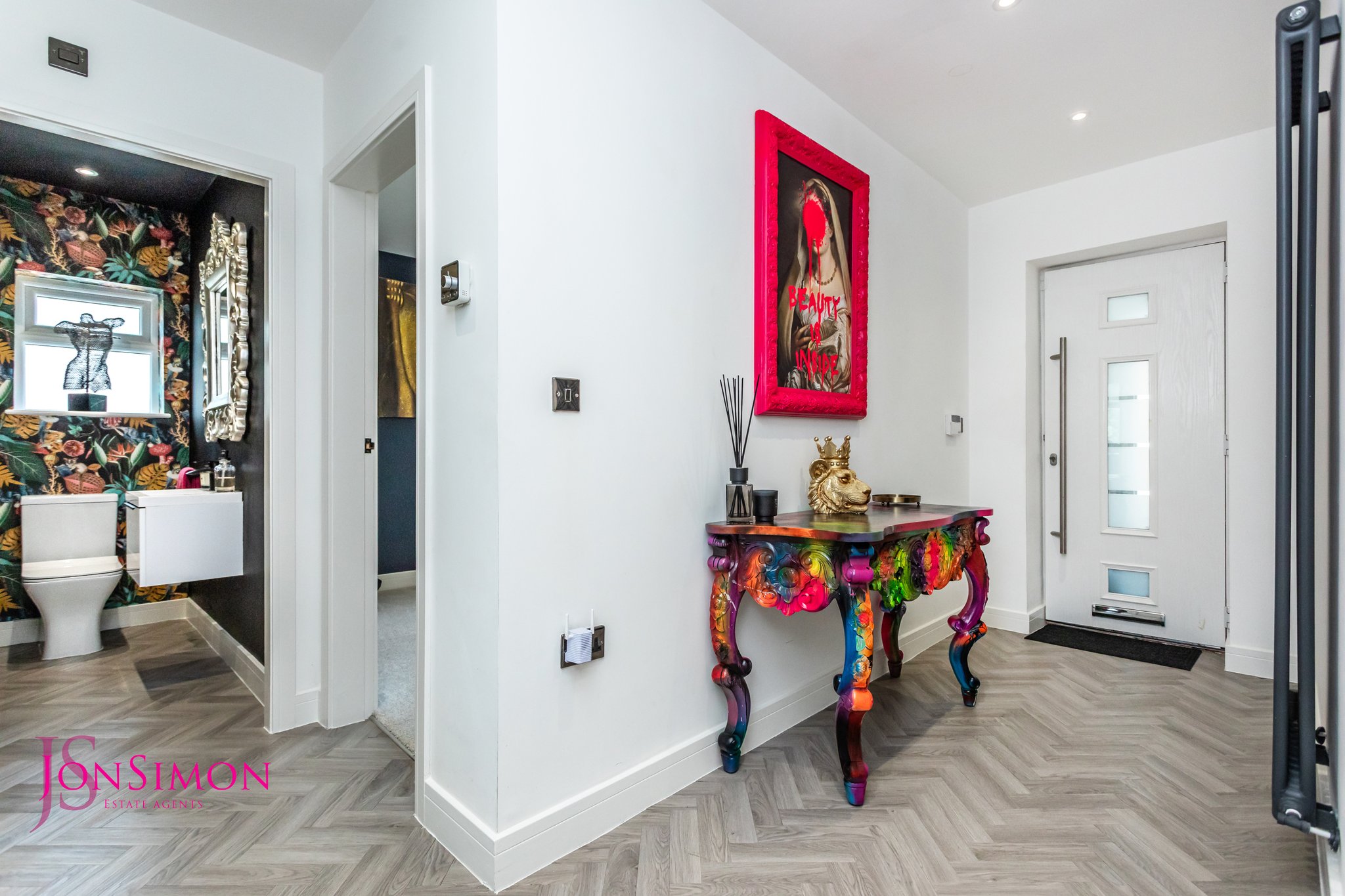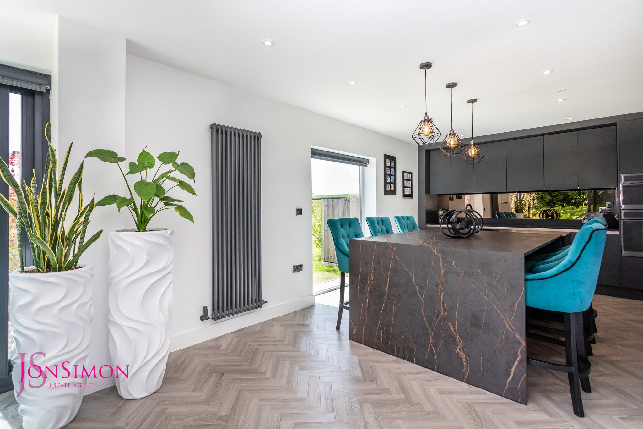 ** MUST SEE PROPERTY ** Tucked away down a long country lane leading to a private road, this exceptional extended detached family home occupies an enviable position within the picturesque village of Ainsworth. Set within its own charming hamlet of neighbouring homes, all currently undergoing high-quality renovations. This property is surrounded by rolling farmland and open countryside, offering the perfect blend of peaceful rural living and contemporary family luxury. Welcome to Knowsley View. This outstanding residence has been completely transformed, now standing as a striking example of modern architecture, premium finishes, and thoughtfully curated design. Virtually unrecognisable from its original form, the property has been meticulously renovated to the very highest standard, creating beautifully proportioned, light-filled spaces where contemporary style meets timeless comfort. The home’s spacious layout has been carefully considered to support both family life and entertaining, with every detail reflecting superior craftsmanship and elegant design. From the breathtaking rural views to the tranquil surroundings, this is a true sanctuary for those seeking a harmonious lifestyle close to nature, yet with every modern convenience. The accommodation briefly comprises: An entrance porch leading into a generous, bright hallway, guest WC, a spacious lounge with feature dual-aspect log-burning fireplace, and an open-plan dining room with picture windows and patio sliding doors, and additional reception room. The contemporary fitted kitchen comes complete with integrated appliances and a separate utility room. To the first floor, a central landing with a striking ceiling feature provides access to four large bedrooms, two of which benefit from walk-in dressing rooms and three boasting bespoke en-suite shower rooms. A stunning, high-specification family bathroom completes the upper level. Externally, a spacious block-paved driveway to the front offers ample off-road parking for multiple vehicles. The property also enjoys extensive wrap-around gardens, featuring a beautifully laid Indian stone patio that seamlessly connects to the vast sliding doors of the kitchen-living-diner, the perfect setting for family gatherings, barbecues, and relaxing evenings, all framed by uninterrupted views across open farmland. Viewing is highly recommended and strictly by appointment only via our Ramsbottom office.