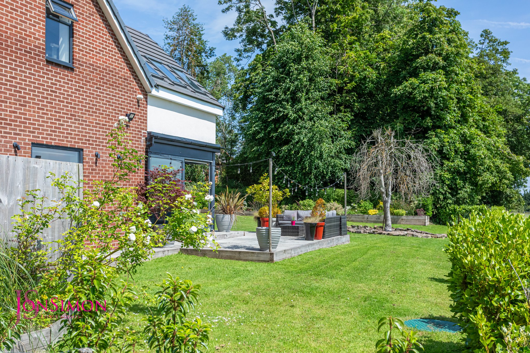 Externally, the property continues to impress. A spacious block-paved driveway at the front provides ample off-road parking for multiple vehicles, perfect for a busy family lifestyle. The true highlight, however, is the extensive wrap-around garden, featuring a stunning Indian stone patio that flows seamlessly from the vast sliding doors of the kitchen-living-diner. This inviting outdoor space is ideal for barbecues, family gatherings, and lively parties, making it the perfect backdrop for creating cherished memories with loved ones.