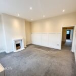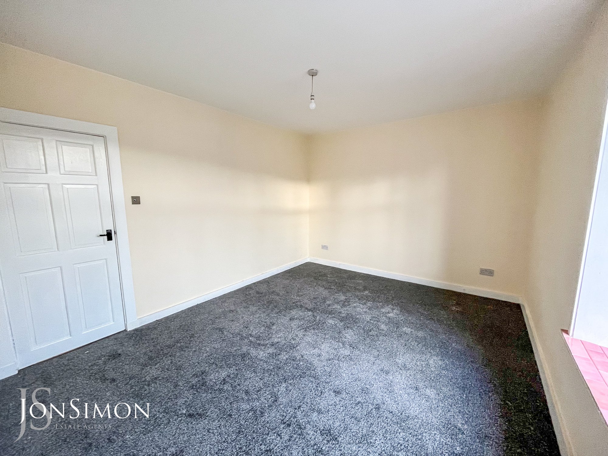 UPVC double glazed front window and door, electric fire with surround, meter cupboard and ceiling spotlights.