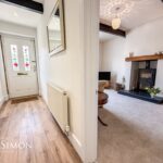 A double glazed front door, radiator, laminate flooring, ceiling spotlights and access to the cellar.