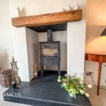 UPVC double glazed front window, a feature log burning stove with fireplace, radiator, ceiling beams, TV point, ceiling point and stairs leading to the first floor landing.