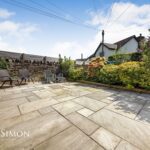 A well maintained rear garden with large paved patio areas, well established borders and shrubs and stunning rear views over farmland.