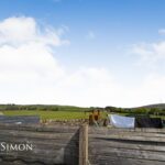 A superb open plan fitted kitchen with a range of wall and base units with complementary work surfaces, single bowl sink unit with drainer, four ring induction hob with extractor unit above, electric oven, breakfast bar, integrated fridge, freezer, and washing machine, feature stone wall, radiator, laminate flooring, ceiling spotlights, feature lighting, feature sliding double glazed rear door and window.