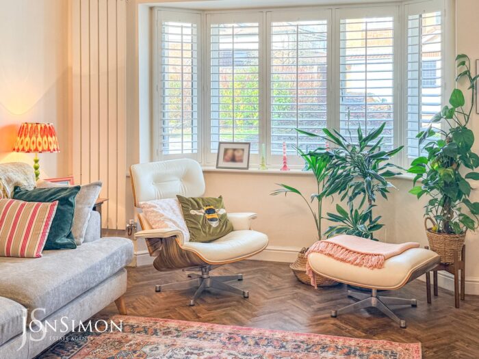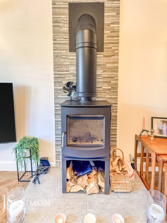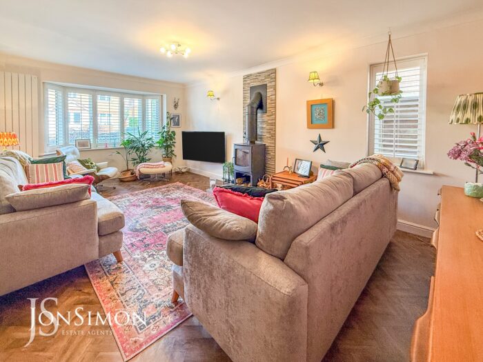 UPVC double glazed bay fronted window, UPVC double glazed side window, feature log burning stove, radiators, TV point, wall lights, ceiling coving and ceiling point.