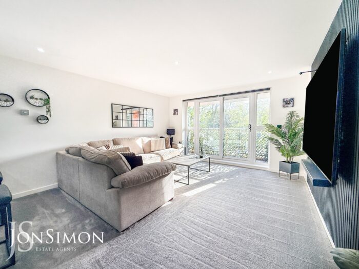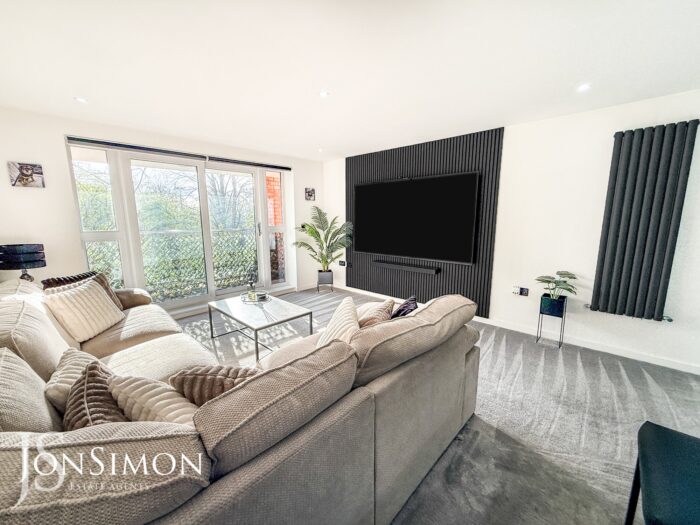 UPVC double glazed sliding patio door and windows, radiator, feature wall and ceiling spotlights.