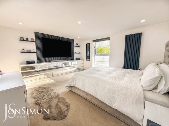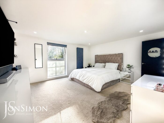 UPVC double glazed window, radiator, feature wall and ceiling spotlights.