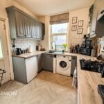 With an ample range of wall and base cabinets with contrasting work surfaces and ceramic splash back tiling, sink and drainer with black mixer tap, wall mounted Worcester central heating boiler, plumbing is in place for automatic washing machine, stainless steel four burner gas hob with matching fan assisted oven, ceiling light point and a UPVC double glazed window to the rear elevation overlooking the private rear yard.
