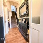 Original ceiling cornice, feature dado rail, neutral decor, ceiling light point and central heating radiator. Stairs leading to the first floor landing.