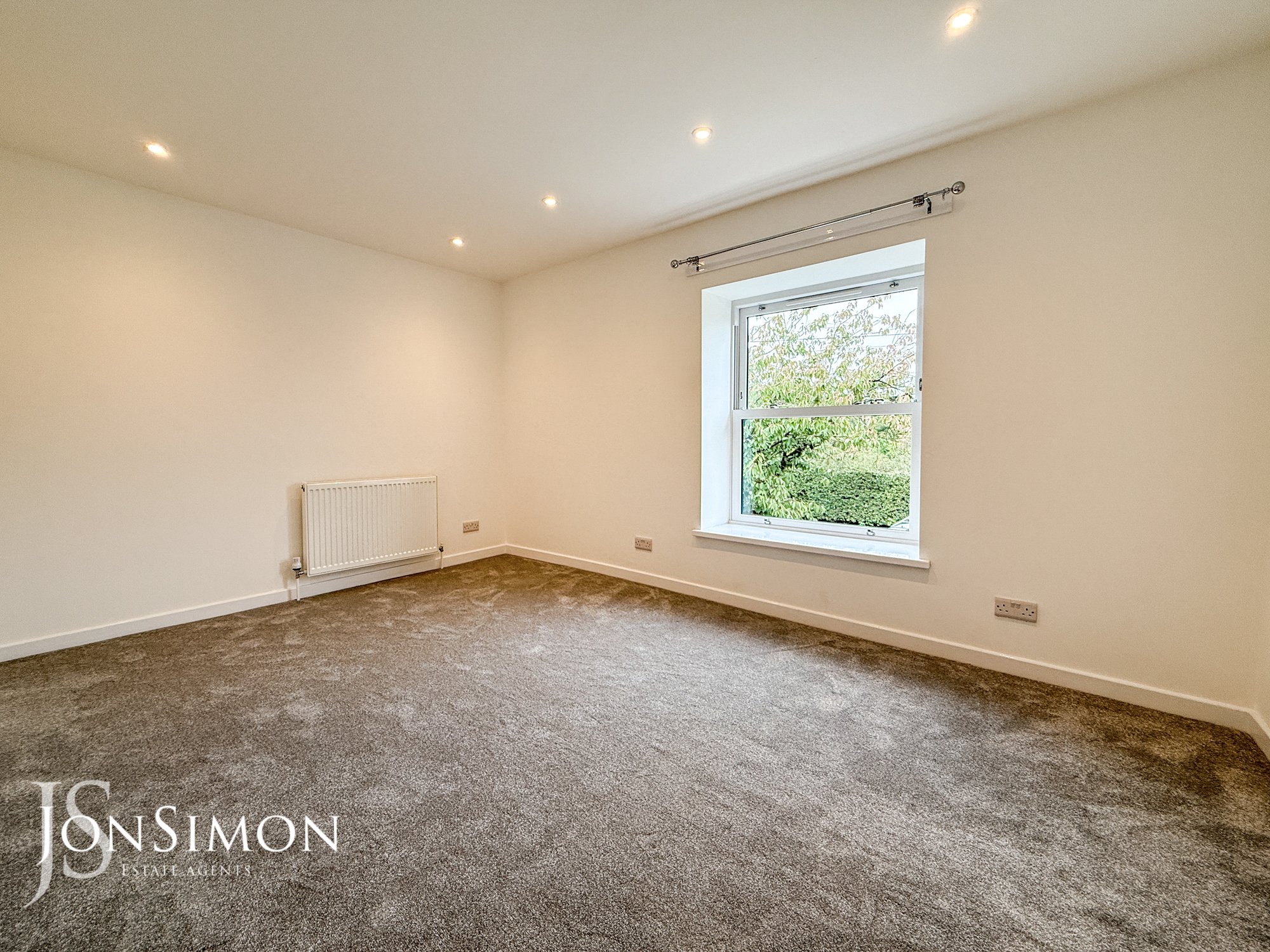 UPVC double glazed sash front window, radiator and ceiling spotlights.