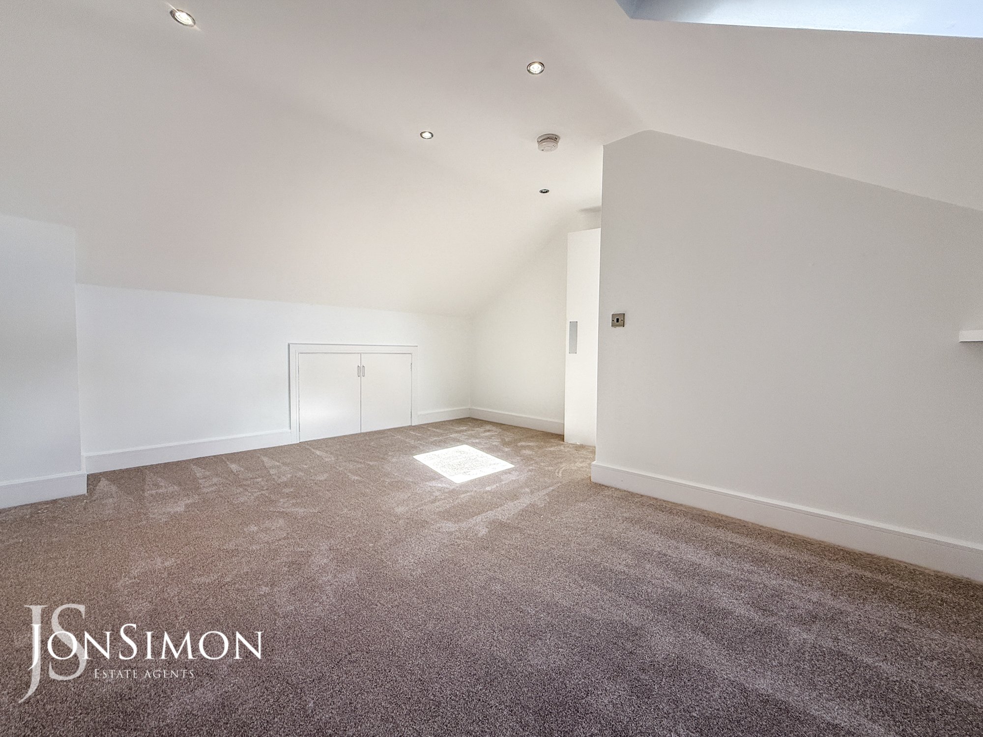 Velux window, radiator, storage of eaves, TV point and ceiling spotlights.