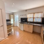 A range of wall and base units with complementary surfaces, four ring gas hob with extractor unit above, electric oven, integrated fridge and freezer, plumbed for washing machine and dishwasher, one and a half bowl sink unit with drainer, Combi boiler, part tiled walls, laminate flooring, radiator, ceiling spotlights, double glazed window and double glazed stable back door.