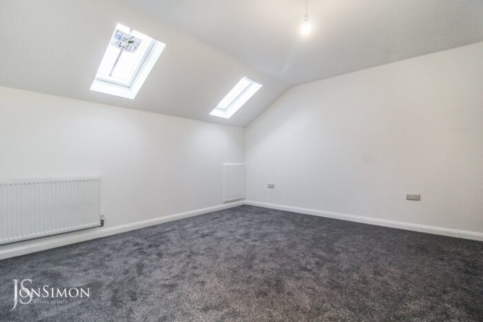 4.91m x 4.96m (16' 1" x 16' 3") Two Velux windows, radiator and ceiling point.