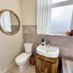 UPVC double glazed rear window, radiator, built-in cupboard housing the combi boiler and ceiling point.