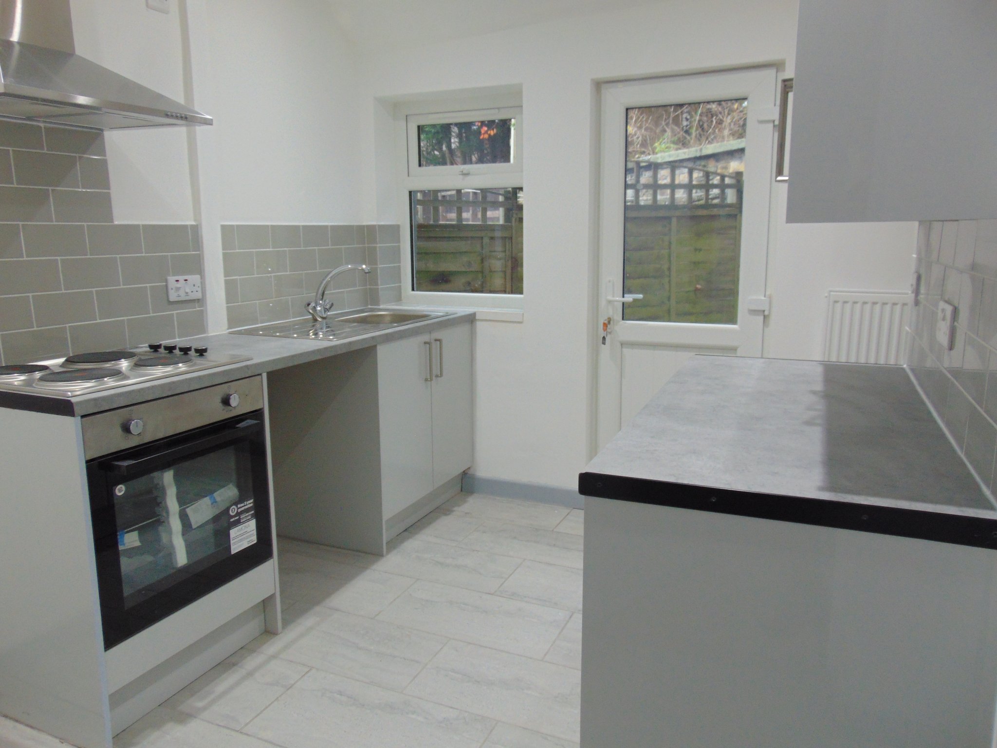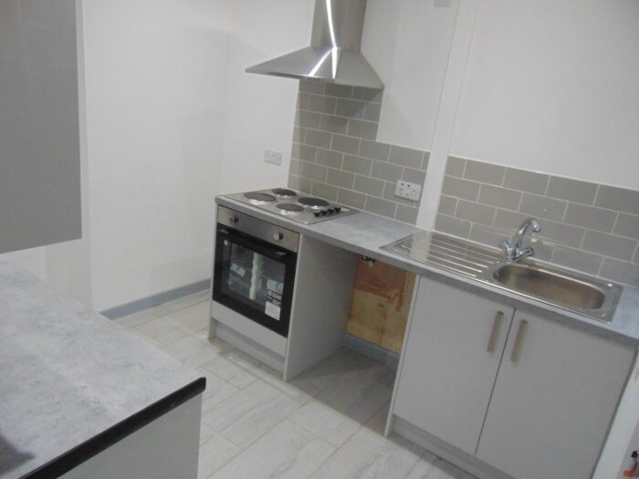 10' 2" x 8' (3.10m x 2.43m) a brand new fitted kitchen with a range of wall and base units that boast a rolled edge working surface. Integrated oven and 4 ring electric hob with cooker hood over. Upvc door to the rear and Upvc double glazed window overlooking the rear yard. Staircase off leading to the first floor.