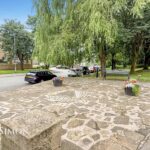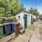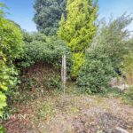 Rear: Steps leading up to the rear garden, pebbled area with well established borders and shrubs. Brick built out house.