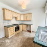 A range of wall and base units with complementary works surface, four ring gas hob with extractor unit above, electric oven, single bowl sink unit with drainer, plumbed for washing machine, radiator, storage cupboard, meter cupboard, UPVC double glazed rear window door.