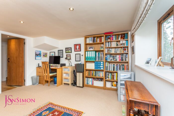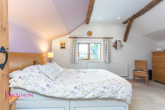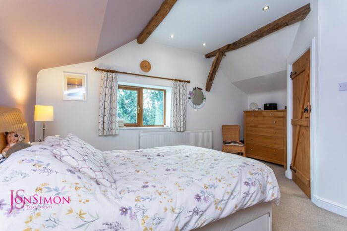 UPVC double glazed rear window, radiator, ceiling beams and ceiling spotlights.