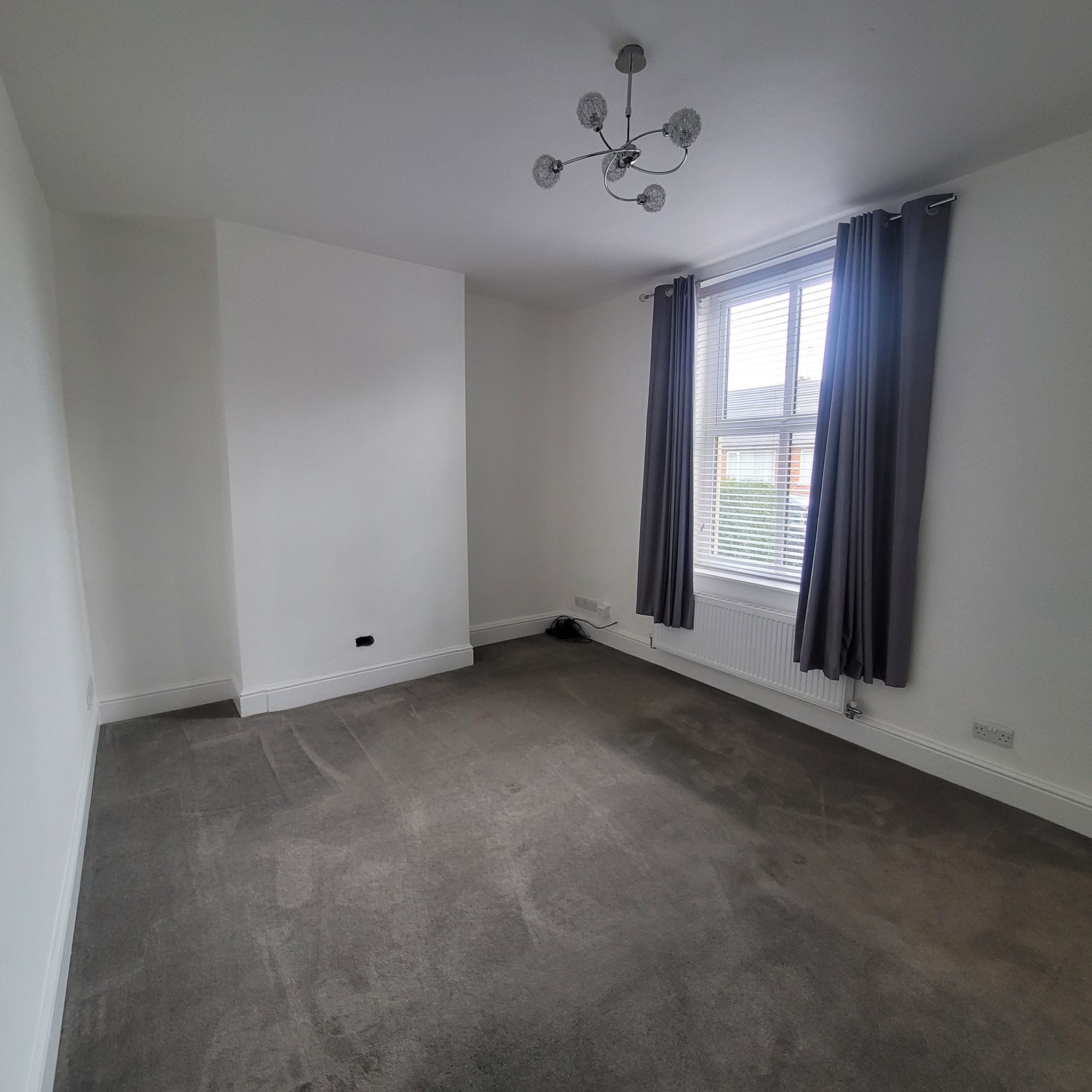 Grey carpet. Freshly decorated walls. uPVC window. Fitted blinds.