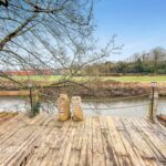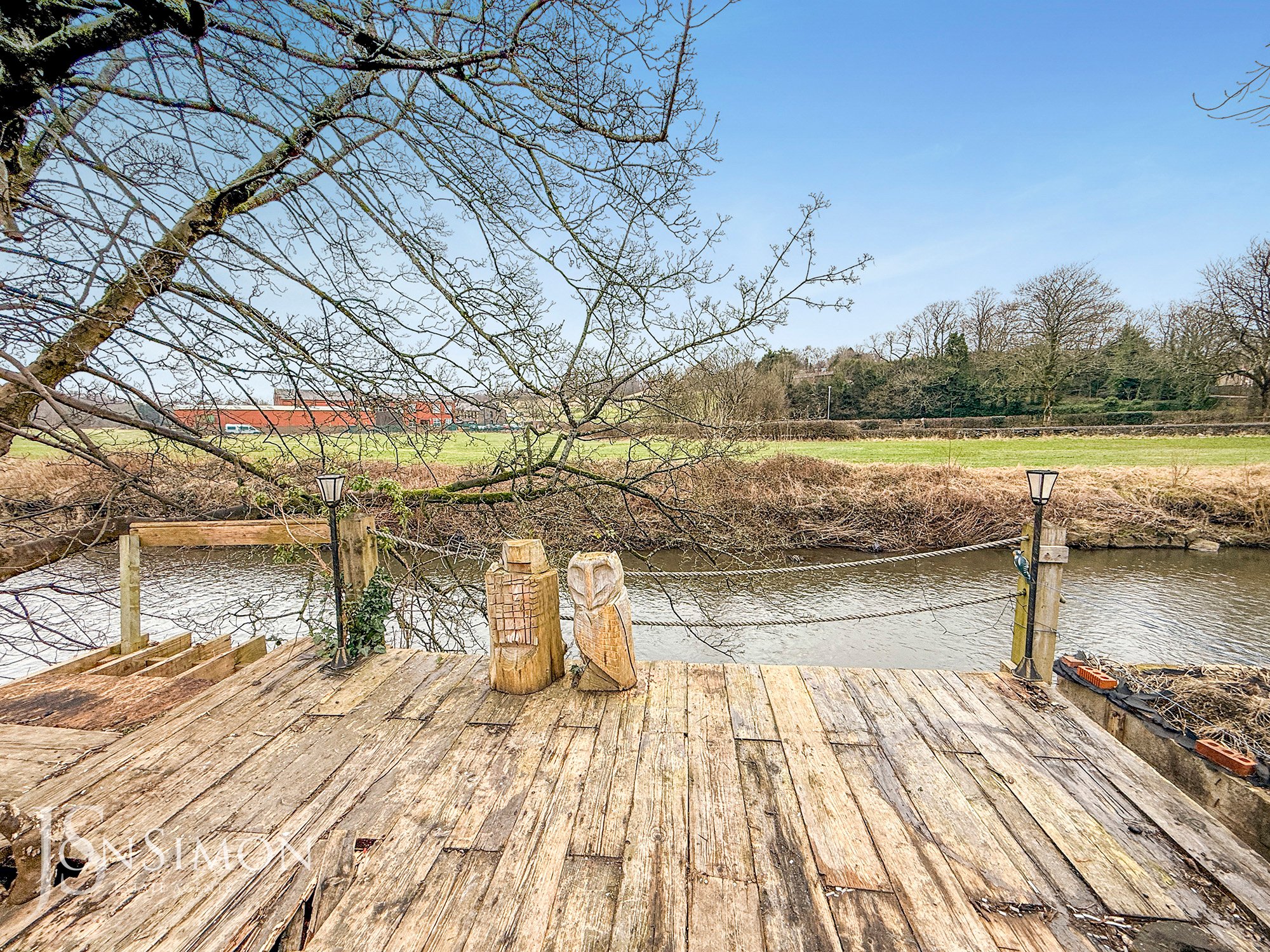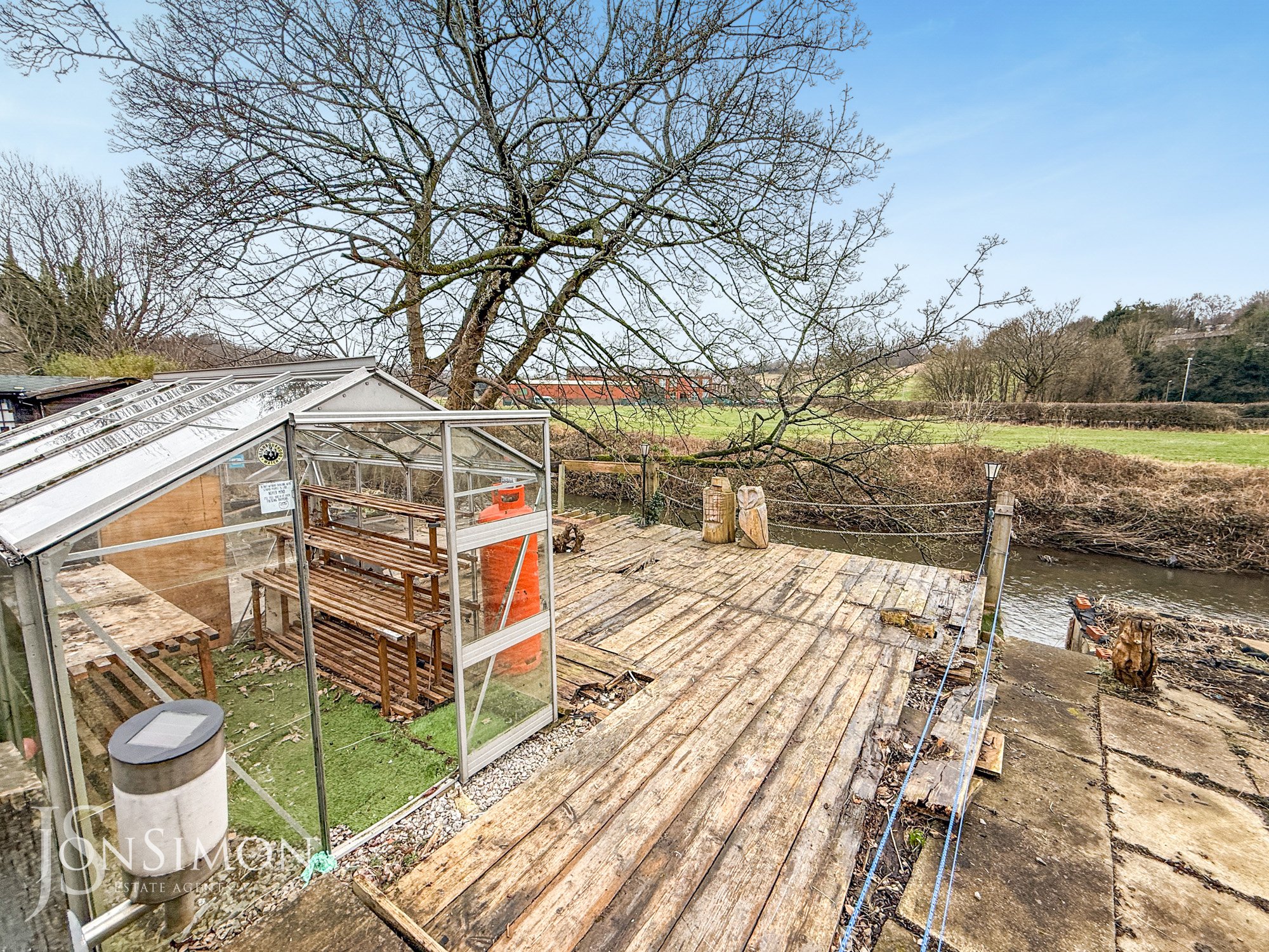 Front: The house has the distinct advantage of an adjacent driveway for off road parking space, established garden with borders and shrubs. Additional garden plot over looking a river.