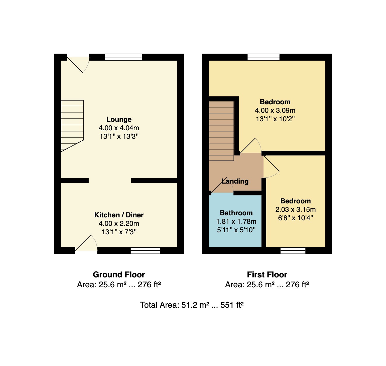 UPVC double glazed front window and door, radiator, meter cupboards, ceiling point and stairs leading to the first floor landing.